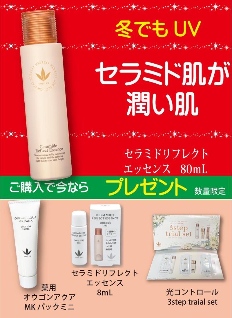 セラミドリフレクトエッセンス【ジョアエコ333】80mL 【プレゼント】薬用オウゴンアクアパック28g&セラミドリフレクトエッセンス8mL&光コントロール3step traial set