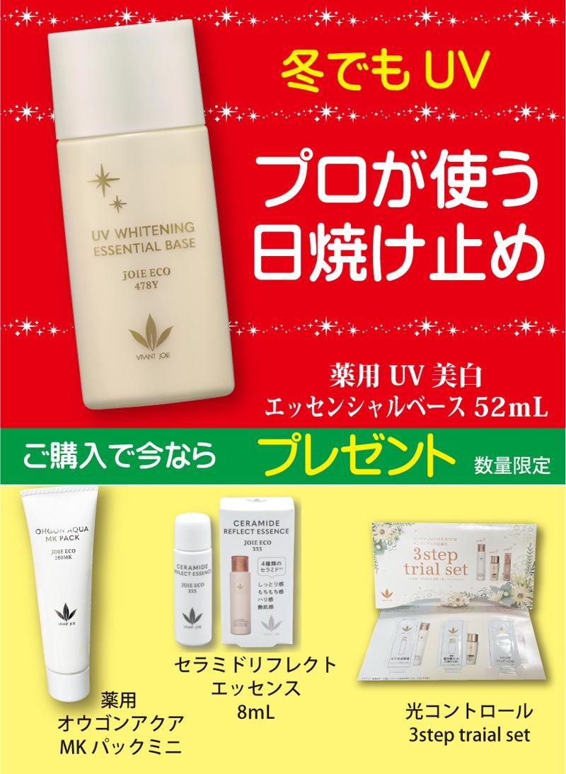 薬用 UV美白エッセンシャルベース【ジョアエコ478Y】52mL 【プレゼント】薬用オウゴンアクアパック28g&セラミドリフレクトエッセンス8mL&光コントロール3step traial set